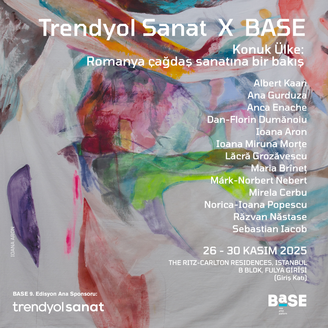 The 9th edition of BASE, Türkiye’s leading exhibition presenting newly graduated artists from across the country, will take place in Istanbul in November 2025. This year, with the support of Trendyol Art, BASE will host a special exhibition featuring artists from its guest country, Romania. The exhibition will feature a curated selection of works by artists who are currently studying or have graduated within the past ten years from departments such as painting, sculpture, photography, video, graphic design, visual communication design, textile, traditional arts, glass, ceramics and animation at Fine Arts Faculties or relevant institutions in Romania. All logistics costs and insurance will be covered by BASE organization.