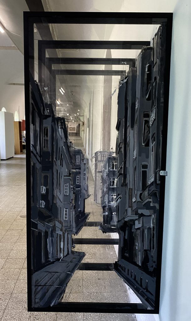 When viewed from different angles, the composition constantly changes much like the shifting perspectives experienced while walking through a city. In this sense, the work becomes both a visual illusion and a space for contemplation. The viewer does not merely look at a street, but rather into the layered dimensions of time and space.
