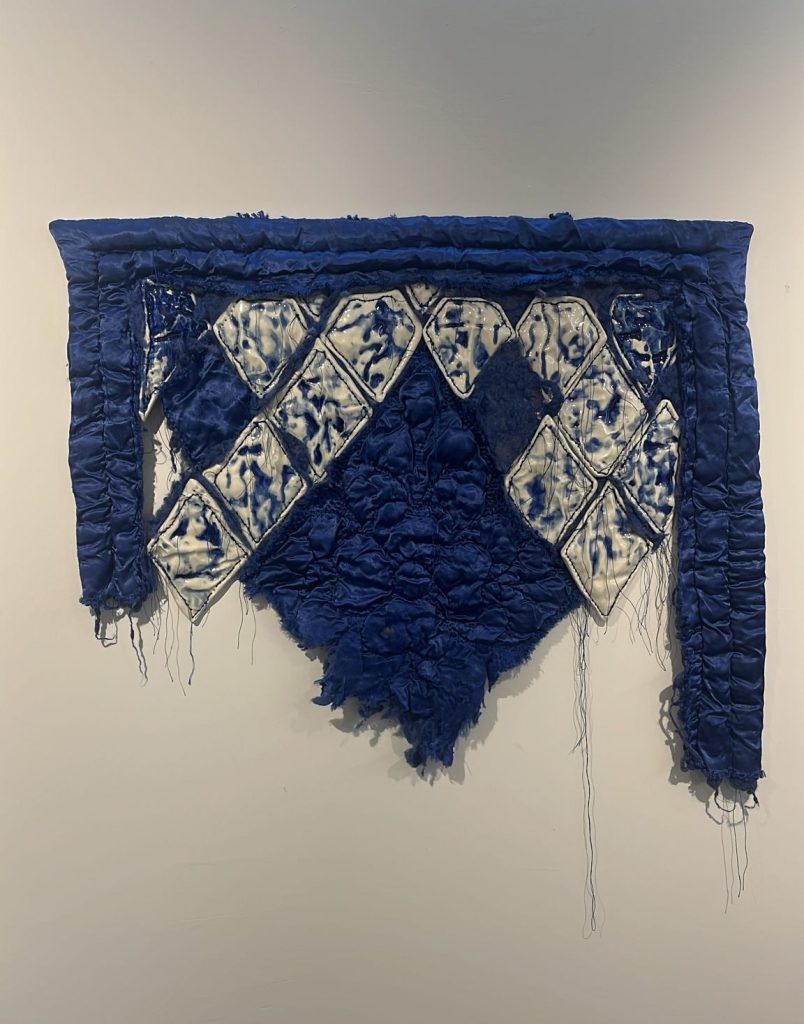 “40 Patches” is born from the memory of scarcity and the act of repair. A traditional child’s quilt is cut apart and reimagined; its missing sections are restored with porcelain. The blue-and-white porcelain surfaces embody both fragility and permanence. The work stands where delicacy transforms into strength, and softness into resilience. In a world hardened by wars, disasters, and pandemics, this quilt becomes a silent elegy to childhood—a fragile refuge for innocence, a tender shelter for the purity we strive, yet often fail, to protect.