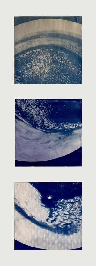 Cyanotype print on paper, 70×70 cm (x3), 95×35 cm (x2)