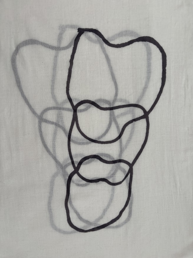 This work is part of Sanem Odabaşı’s ongoing exploration of the relationship between nature, gardens, and human existence. For the artist, the garden is a space of thought where beings come into contact and boundaries dissolve into one another. The three forms in the piece represent the invisible bond between “I, you, they,” while also evoking a single body, like a head, torso, and legs. When brought together, they form both an individual and a collective presence. On the layered fabric, the three forms gently touch; separation and unity are felt at once.