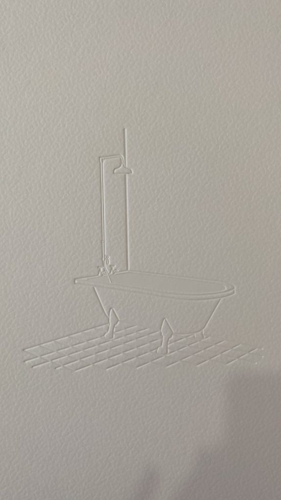 Mekânın yapısal kesitleri yalınlaştırılarak, her türlü fazlalıktan arındırılmış biçimde yüzeye aktarılmaktadır. Kabartma baskılar aracılığıyla oluşturulan bu yüzeyler, yalnızca görsel değil, aynı zamanda dokunsal bir algı alanı yaratır. Kullanılan beyaz kâğıt, iç-dış diyalektiği üzerinden izleyicide bir yanılsama yaratma amacı taşırken, aynı zamanda dokunma dürtüsünü tetikler. Adeta yalın, şeffaf ve geçirgen bir nitelik taşıyan bu yüzey, yalnızca görsel değil, dokunsal bir algı alanı yaratır. Bu bağlamda, kâğıt yüzeyindeki kabartmalar; görünen ile hissedilen, yüzey ile derinlik, iç ile dış arasında algısal bir yanılsama yaratmaktadır.
