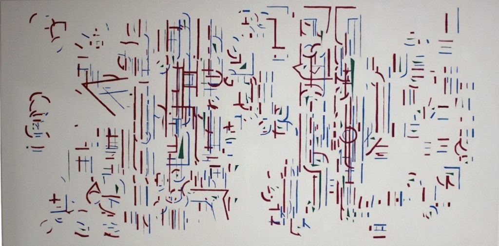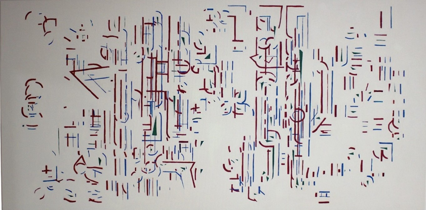 In my work, I explore not a direct translation between music and painting, but the potential for the two disciplines to intersect through their relationships with time and space. In the Jazz Series, I respond to this question by “freezing” the continuously flowing time of a recorded piece on the canvas, while simultaneously reproducing it.
