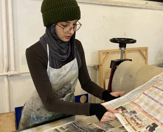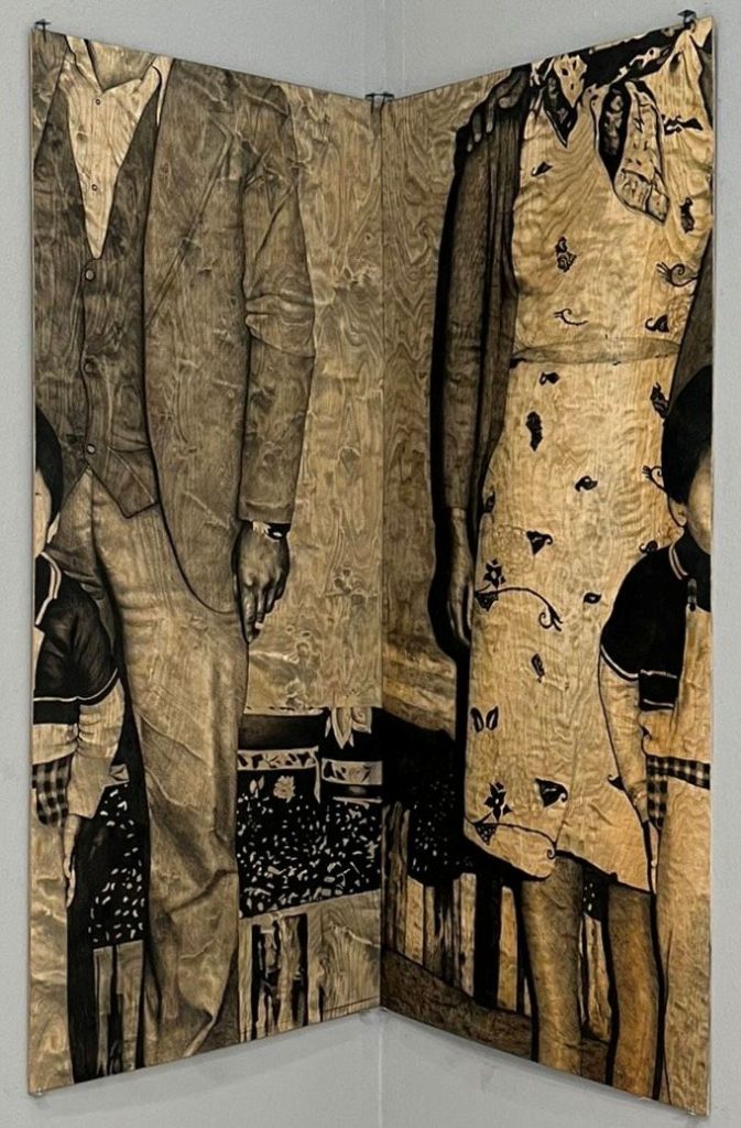 Focusing on the impact of human relationships on the individual, Fatmanur Bostancı integrates excerpts from her memories paired with photographs and thoughts inspired by psychotherapy theories onto plywood. In her work “Conditions of Worth”, she references psychologist Carl Rogers’ concept of “unconditional positive regard,” focusing on the relationship between child and parent. Embracing a humanistic psychological approach, Bostancı advocates for the practice of accepting and supporting individuals without judgment regardless of their actions and behaviors.