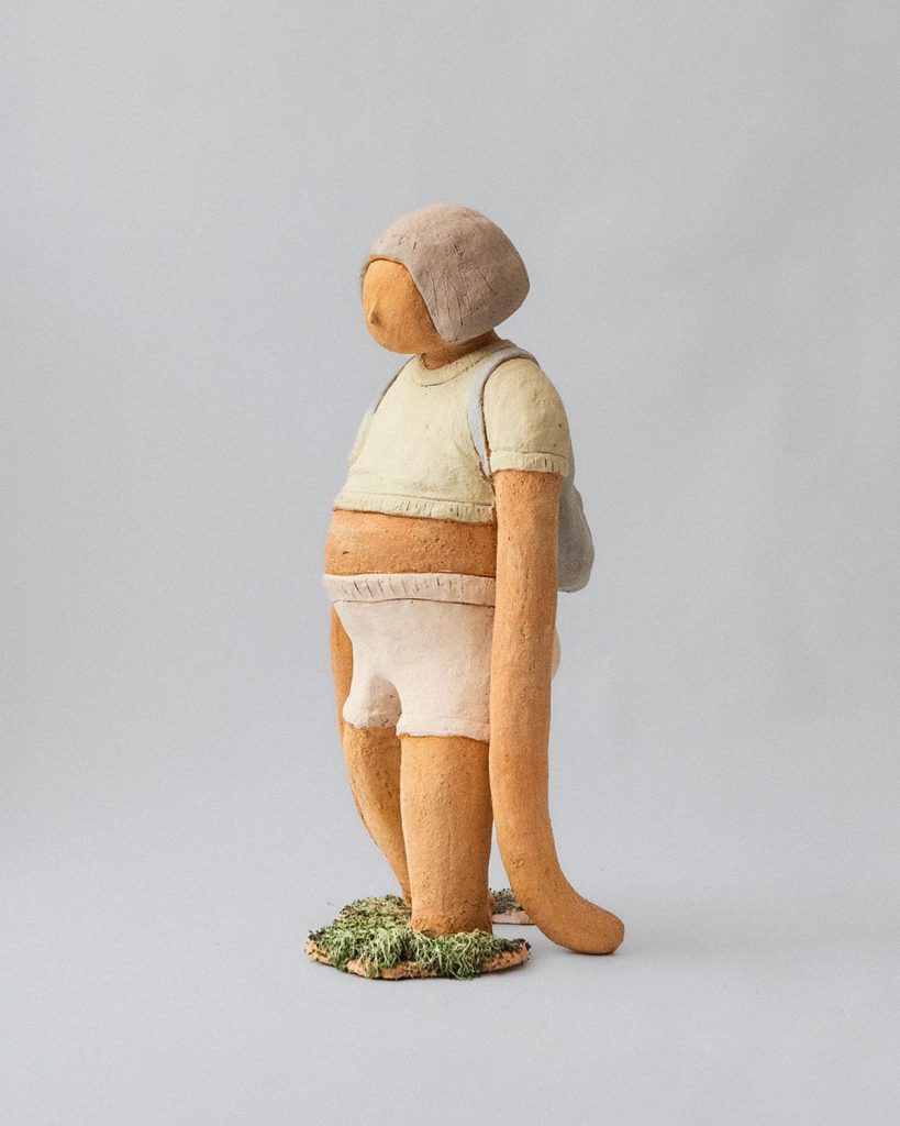 Bu figür bir dönüş anı. Yalnızca bir yerden değil; bir zamandan, bir duygudan dönmek. Sevdiğim şeylerden uzaklaştıkça içimde büyüyen yorgunluk… Uzayan kollar, geride kalmak isteyen parçalar gibi. Bu çocuk figürü benim; her dönüşte içimde taşıdığım karmaşık duyguların bedeni. İlerlemeliyim ama geçmişe sarılmak istiyorum. Bu seramik, devam etmekle kalmak arasında sıkışmış yalnız bir hâli anlatıyor.