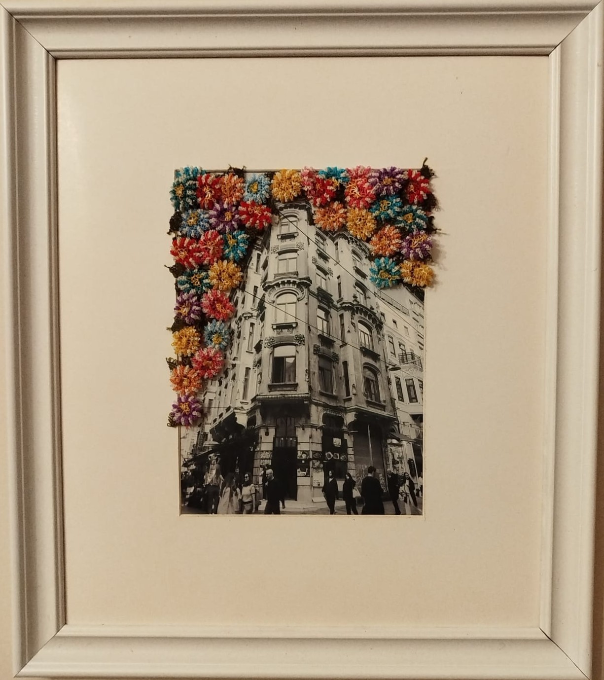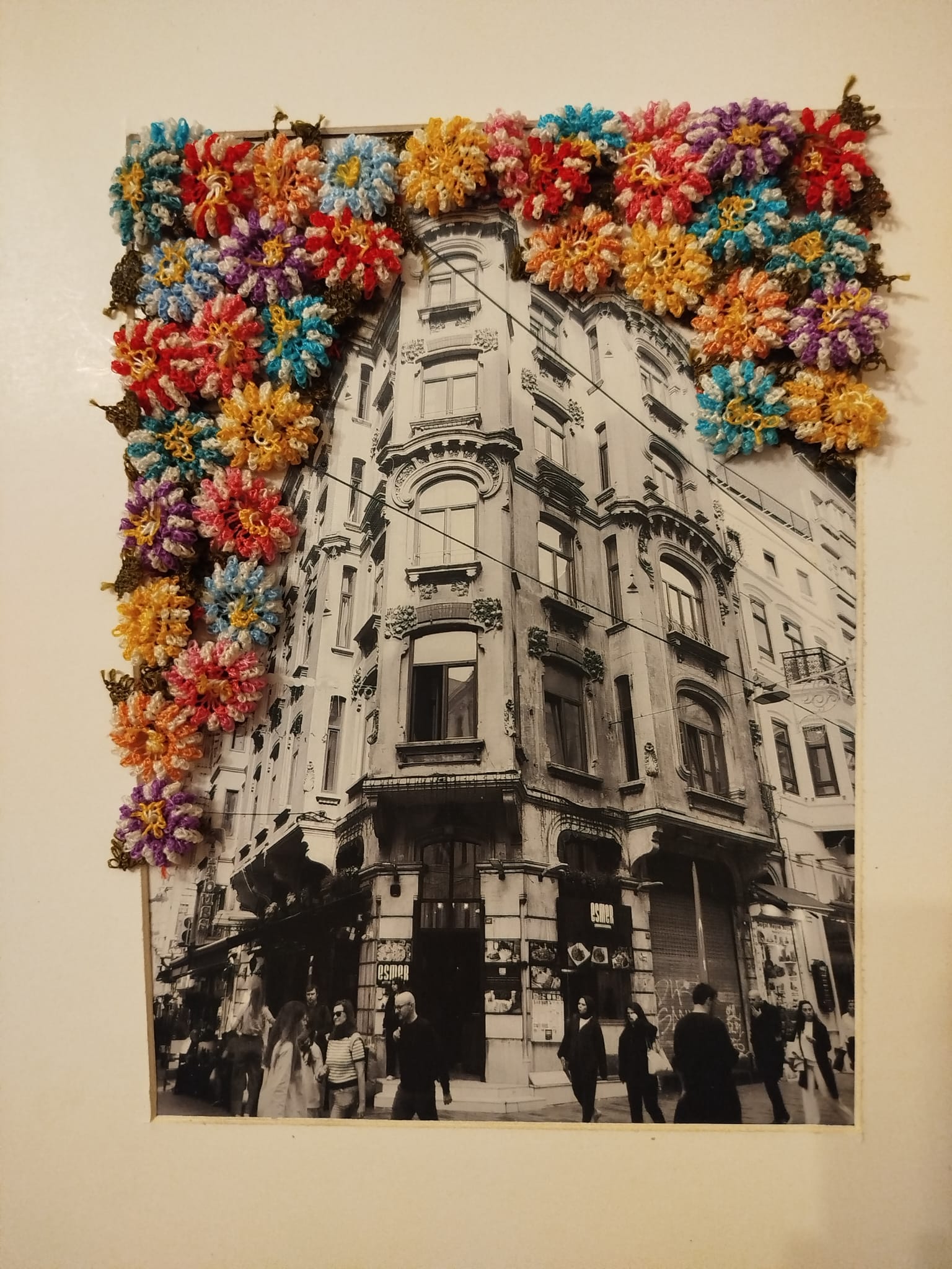 The Flâneur Series brings together the fleeting moments of the city and the timeless language of traditional handicraft, transforming seemingly ordinary moments of everyday life into a poetic narrative. The contrast between the documentary reality of photography and the tactile and personal memory of needlework makes each frame both a contemporary and familiar experience. Small colors blossoming in solitude hint at a hope waiting to be noticed amidst the noise of the crowd, and the possibility of spring. Even the mere possibility of spring’s existence is enough to transform space and time.