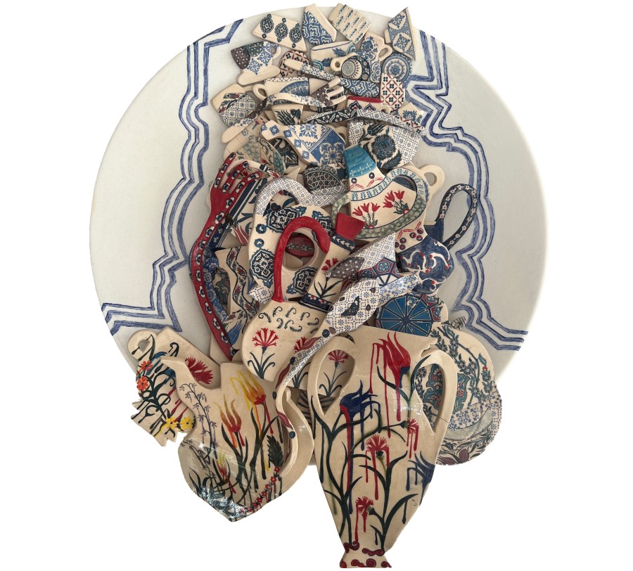 Seramik, beyaz çamur, 1160 derece elle şekillendirme, 50x44x7 cm