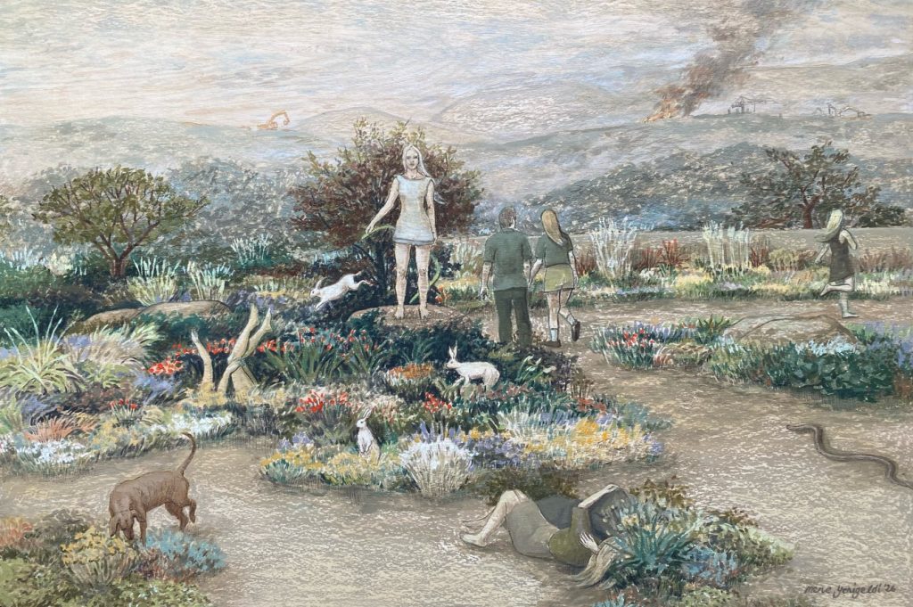 Huş kontraplak üzerine akrilik, yağlıboya, pastel kalem, 50×75 cm
