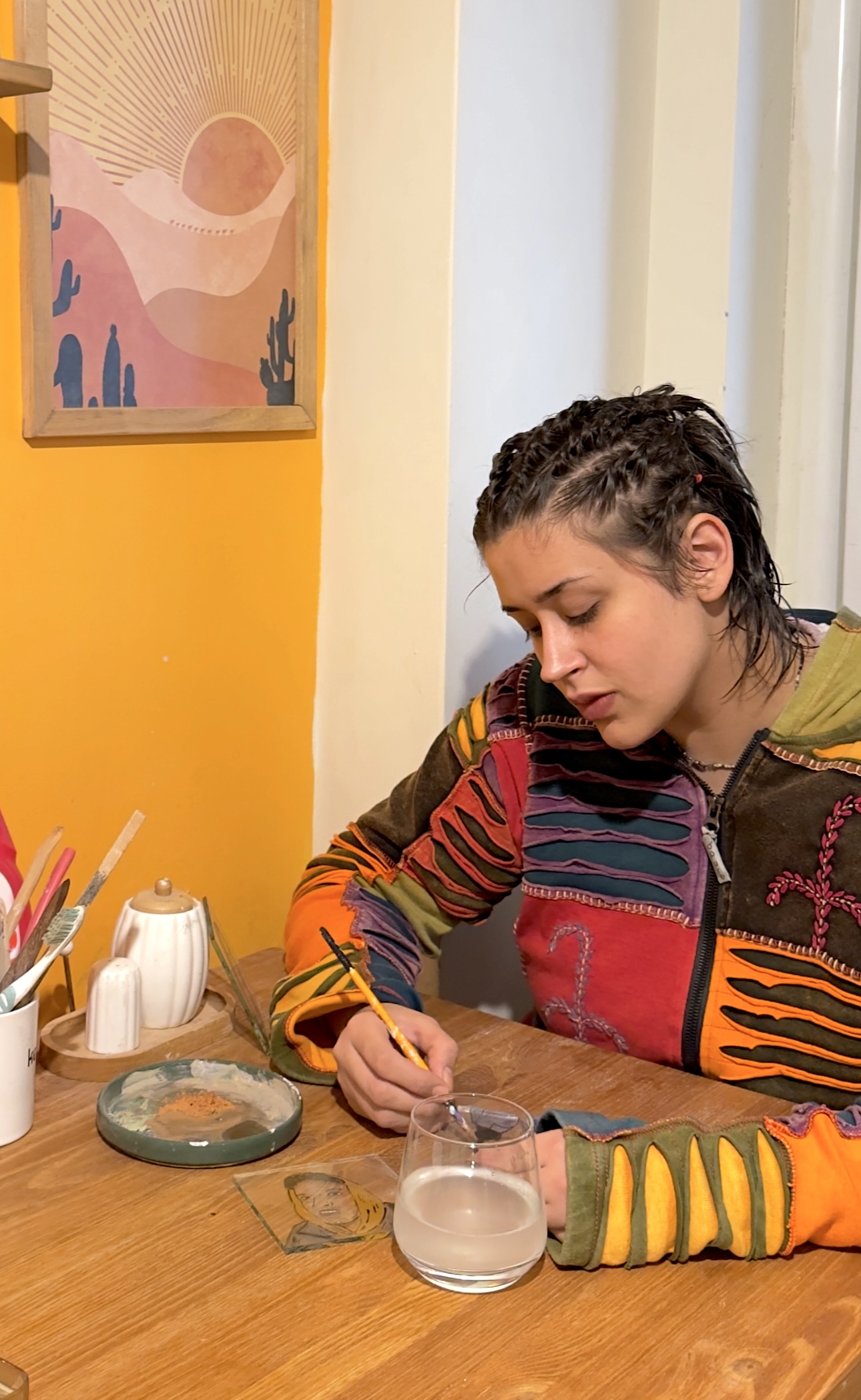 Cam boyama, 12 cam plaka, 12×20 cm + ahşap alt mekanizma, 60x60x14 cm