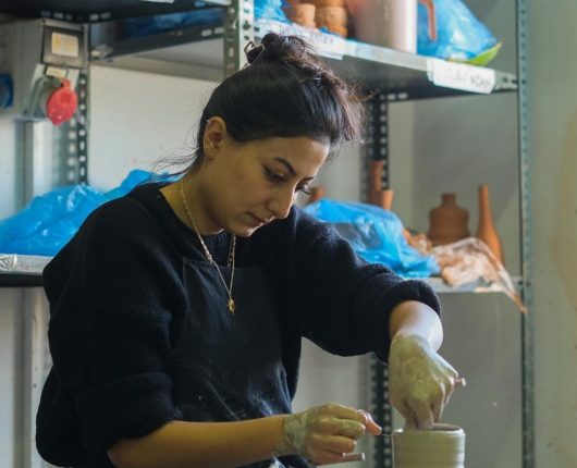 Stonware seramik çamuru, 1220 C sırsız + isli pişirim, 90×15 cm