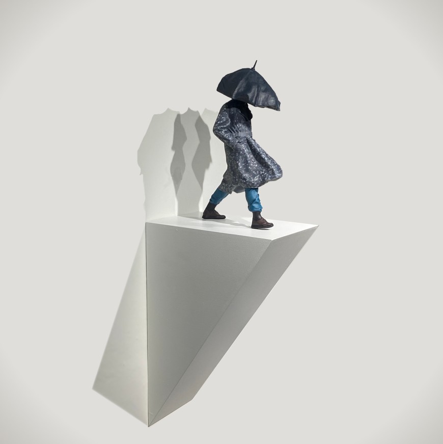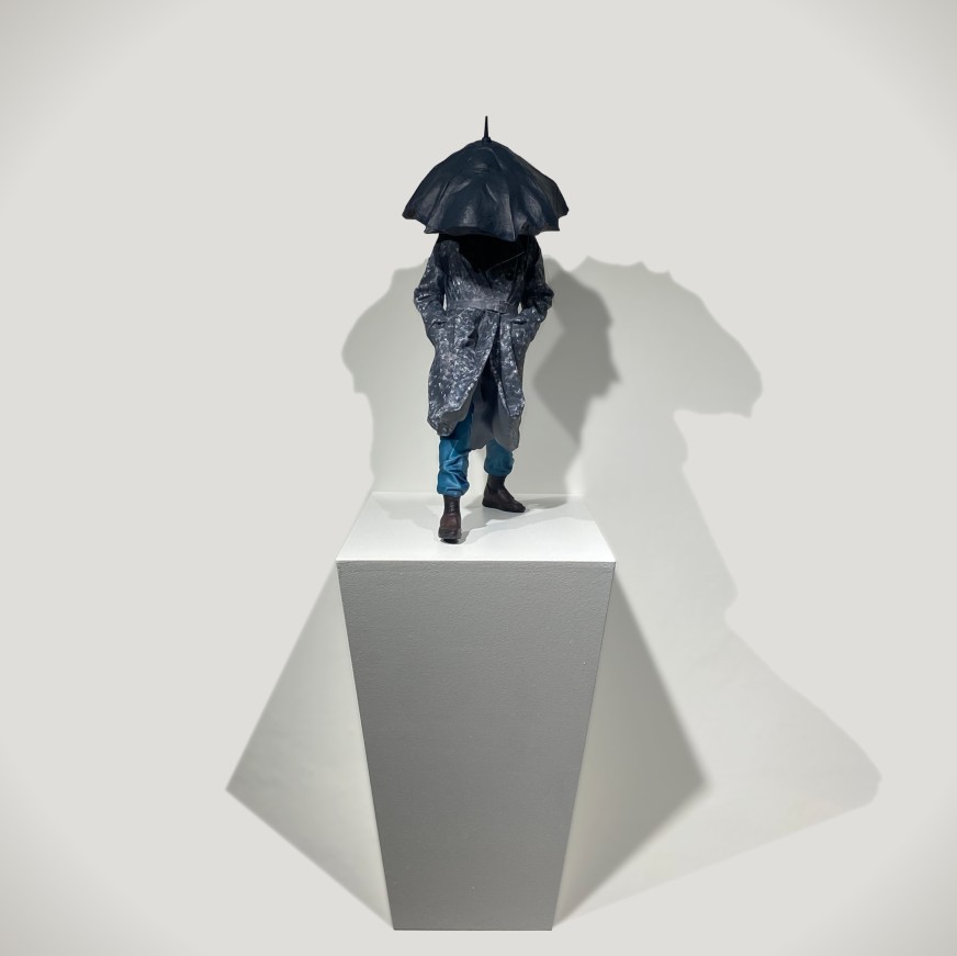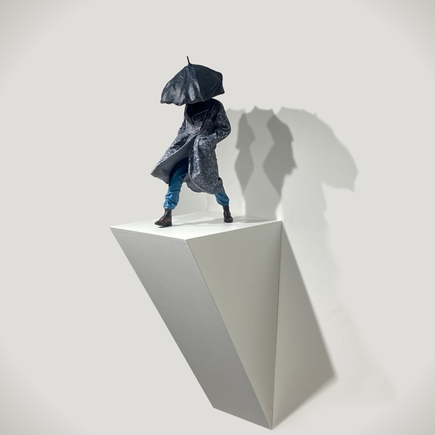 Born in 1994 in Izmir, Emre Evcimen graduated from Dokuz Eylül University Faculty of Fine Arts, Department of Sculpture in 2020 where he currently pursues his graduate studies. In 2019, he received the Merih Dönmez Special Jury Award at the Aegean Contemporary Education Foundation’s 18th Sculpture Contest. In his works depicting a figure with an umbrella in various situations, he explores the discrepancy between the reality of the external conditions and our expectations. He is interested in the area “outside” the umbrella rather than the area under it.