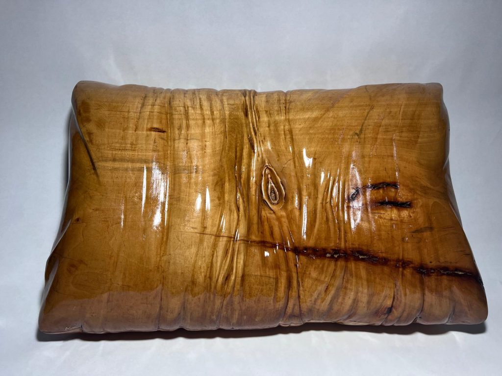 Love, passion, sexuality, lifelong companionship, fleeting affairs, innocent slumbers, dreams, and nightmares… Shaped in the form of a pillow through traditional woodcarving techniques, the work unfolds a layered visual narrative, enriched by the mischievous image of a vagina positioned at its center.