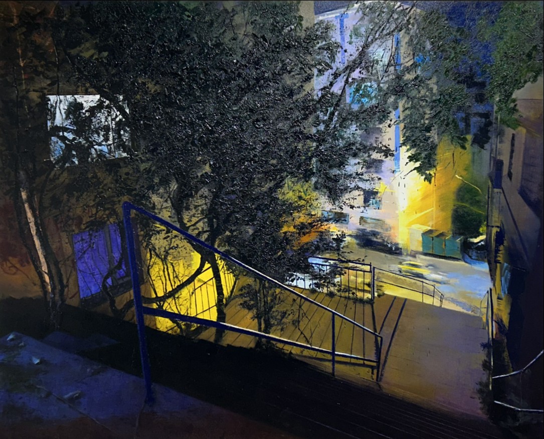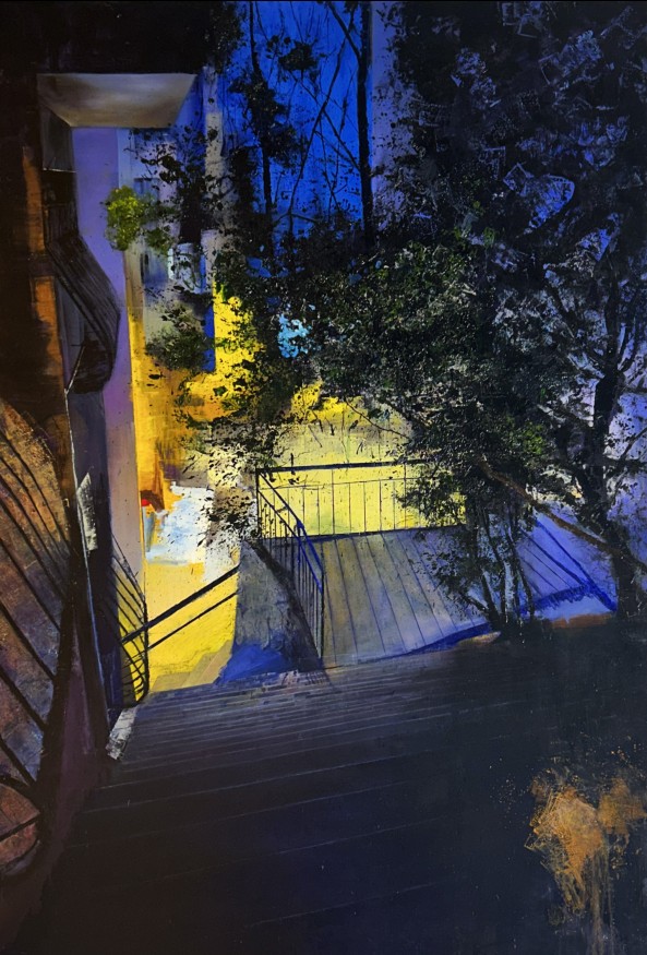 “Remainder” is a series of paintings that questions the transformation of space into traces of memory through the layered existence of a staircase. Stairs function as metaphors for both physical transition and inner transformation. Through visual repetition, the viewer is invited to confront different states of the same place. The “Remainder” series is a meditation on memory that attempts to fix the traces of lived experience in a spatial form, revealing the poetic layer within the everyday.