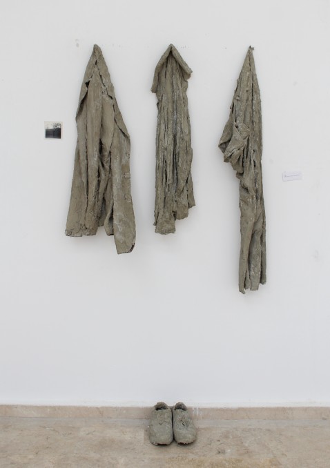 In this work, the clothes worn by the person in an old photograph are coated with cement, placed within the exhibition space, and positioned next to the photograph. The contrast between the hardness of cement and the softness of fabric creates a metaphorical space that explores the materiality of memory and the fragility of recollection. The work’s interrogation of the relationship between memory and space reinterprets the notions of identity and belonging by transferring everyday objects into an artistic context.