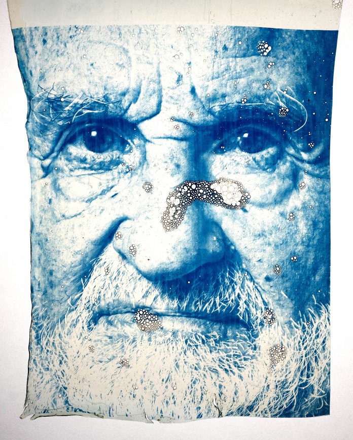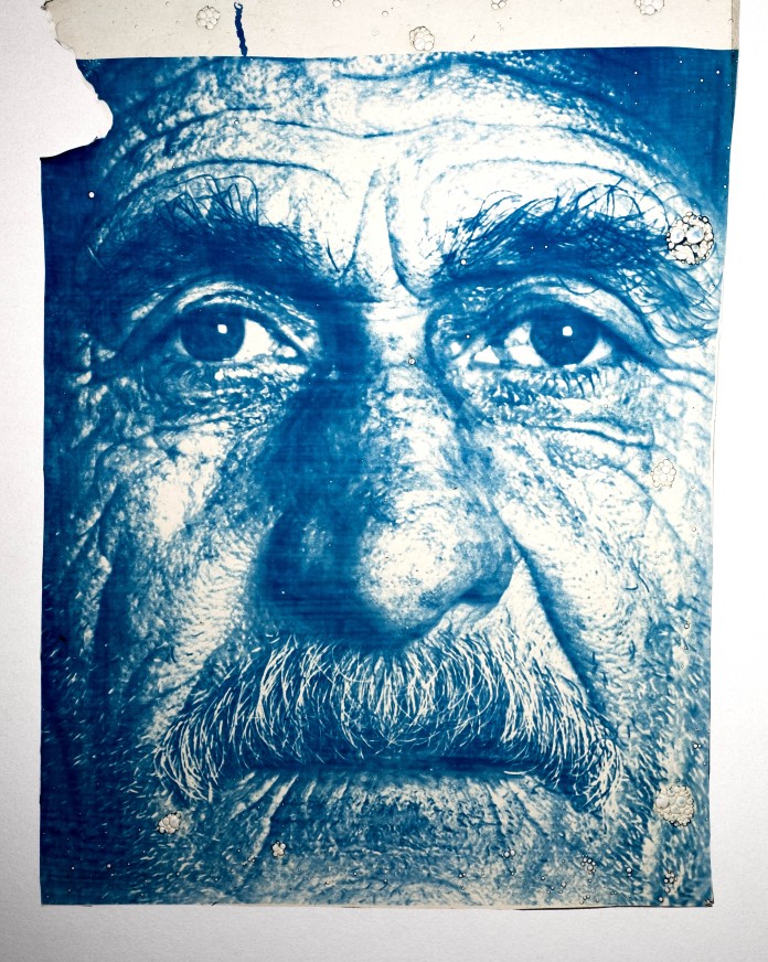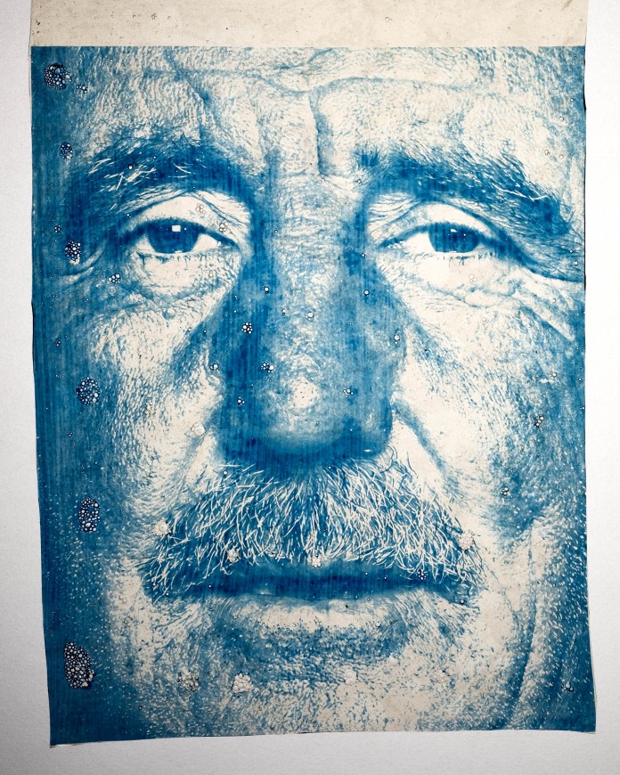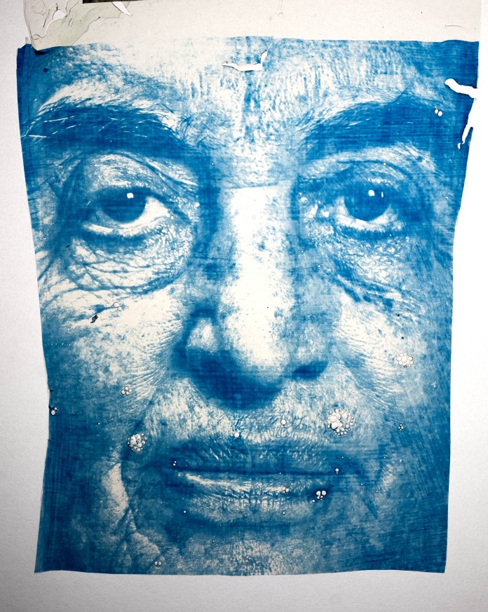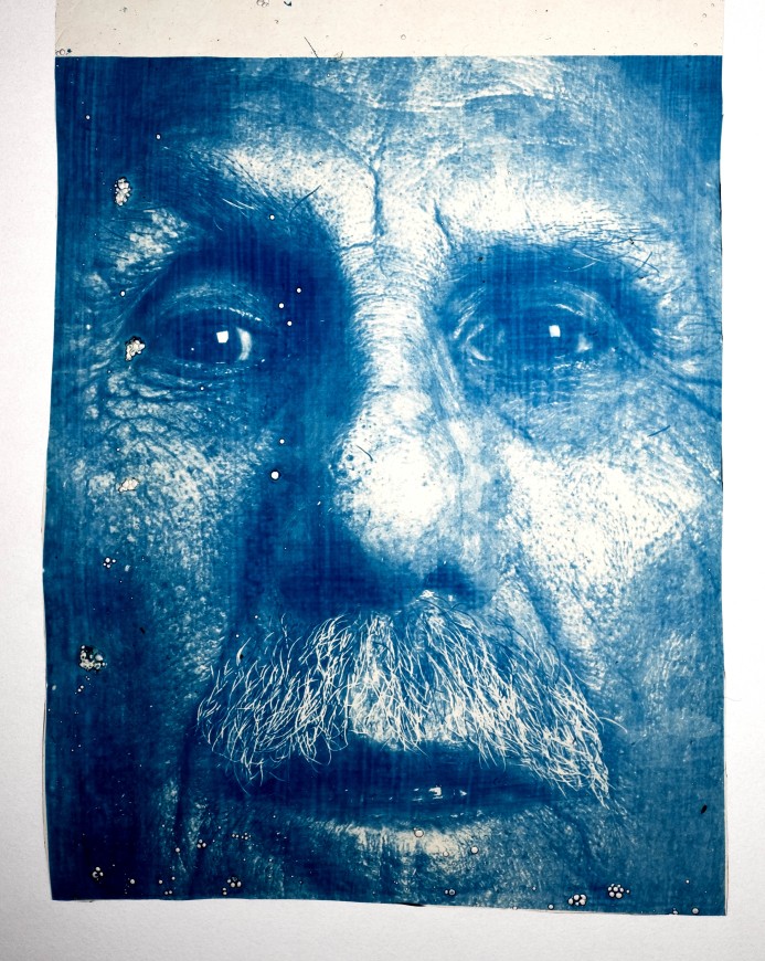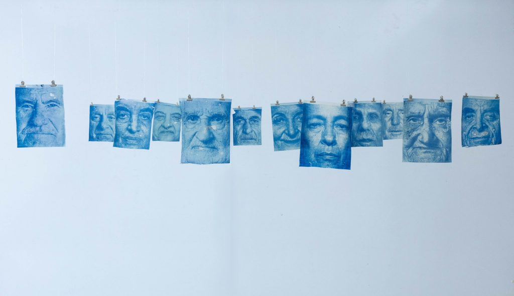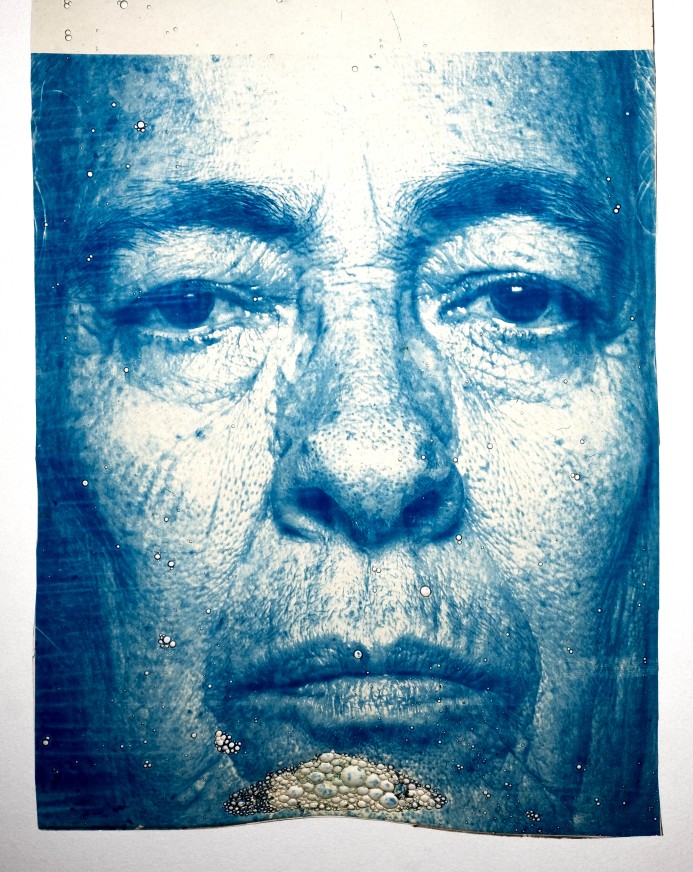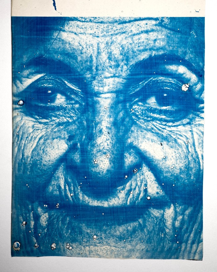 The portraits are printed with cyanotype on gelatin-based biomaterials. This material is not permanent—it breaks down over time. It shows how people try to keep up with a world that is always changing. The project highlights change and transformation more than something that stays the same. It doesn’t try to fight time but shows how people change with it. It creates a contrast between what lasts and what fades, and focuses on the moment.