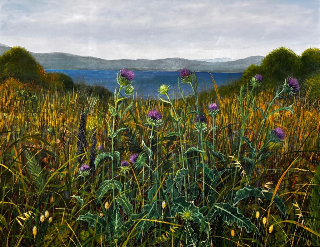 Otlar büyür, nehirler akar, mevsimler değişir. Doğa, kendi ritmi içinde zahmetsizce var olur. Taoist düşüncede bu kendiliğindenlik hali wu wei olarak adlandırılır: Oluşun, müdahale edilmeden kendi yönünü bulmasına izin veren bir açıklık. “Kendiliğindenliğin Kıyısında” serisi, bu anlayışı özünde taşır ve manzarayı bir süreç olarak ele alır. İlk bakışta kaotik, rastlantısal görünen bitkisel formlar, doğaya içkin düzene işaret eder. Tuval yüzeyinde resmin ortaya çıkış süreci de bitkilerin topraktan kendiliğinden filizlenmesi, büyümesi ve yeryüzünü sarmasıyla benzer biçimde gerçekleşir. Seri, doğanın kendiliğindenliğini yüzeyde bir kez daha deneyimsel olarak ortaya koyar.