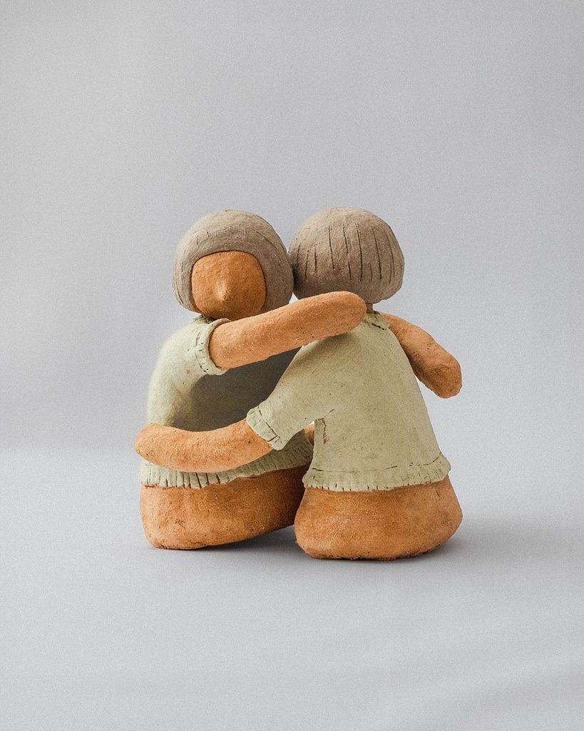 Bu figürler iki kişi değil, bu benim. Belki ilk kez, kendime sarıldığım ve kendimi olduğum gibi kabul ettiğim an. Çocukken başkasından beklediğim sevgiyi, büyüdükçe kendimde aradım. Çünkü en çok kendi kollarıma ihtiyacım vardı. Bu sarılma bir avuntu değil; derin bir kabulleniş. Korkularımla, geçmişimle, eksiklerimle… Bu eser, içimdeki sessiz bir barış. Kendini sevmek, bitiş değil; yeniden başlamaktır.