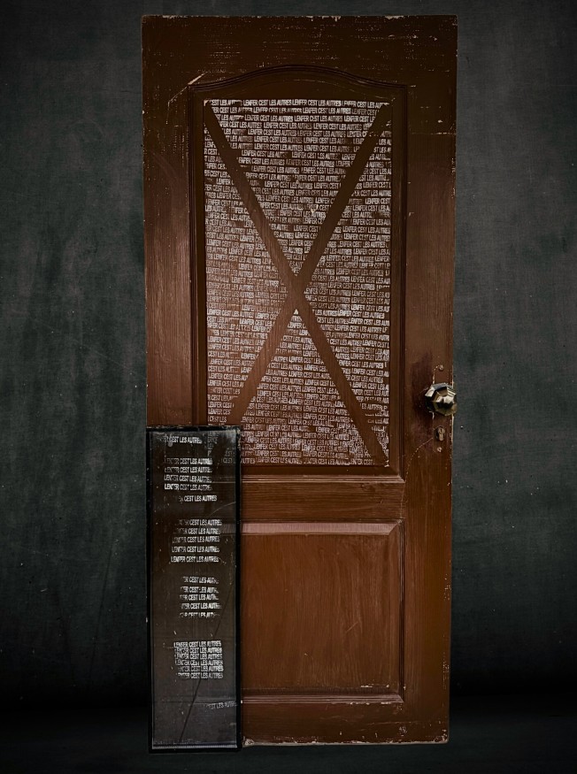 Sartre’s quotes “L’enfer, c’est les autres” (Hell are others) is mentioned in his 1944 theatre play Huis Clos (No Exit). In the game Huis Clos, the three characters are trapped in a room after they die and realise that they can’t tolerate each other. They understand that hell is not a chamber of torture, flames or demons, but the never-ending judgemental gaze of others. This sentence is often misunderstood and it is thought that Sartre implies that human relationships are completely bad. However, Sartre explains here that the identity and existence of man is shaped by the eyes of others. For example, when someone labels you as a coward, it is possible that you are associated with this adjective and act accordingly. In this job, which I started from being mimicked, the door contains statements about my limit, my disability and my existence. I also questioned this work of mine. What did being the other in someone else’s eyes do to me?