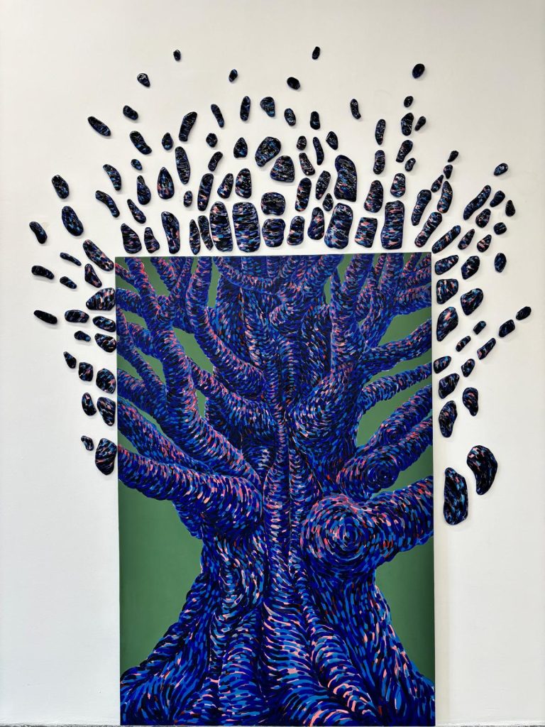 Oil on canvas, 184×122 cm + Glazed ceramic installation, 250×270 cm