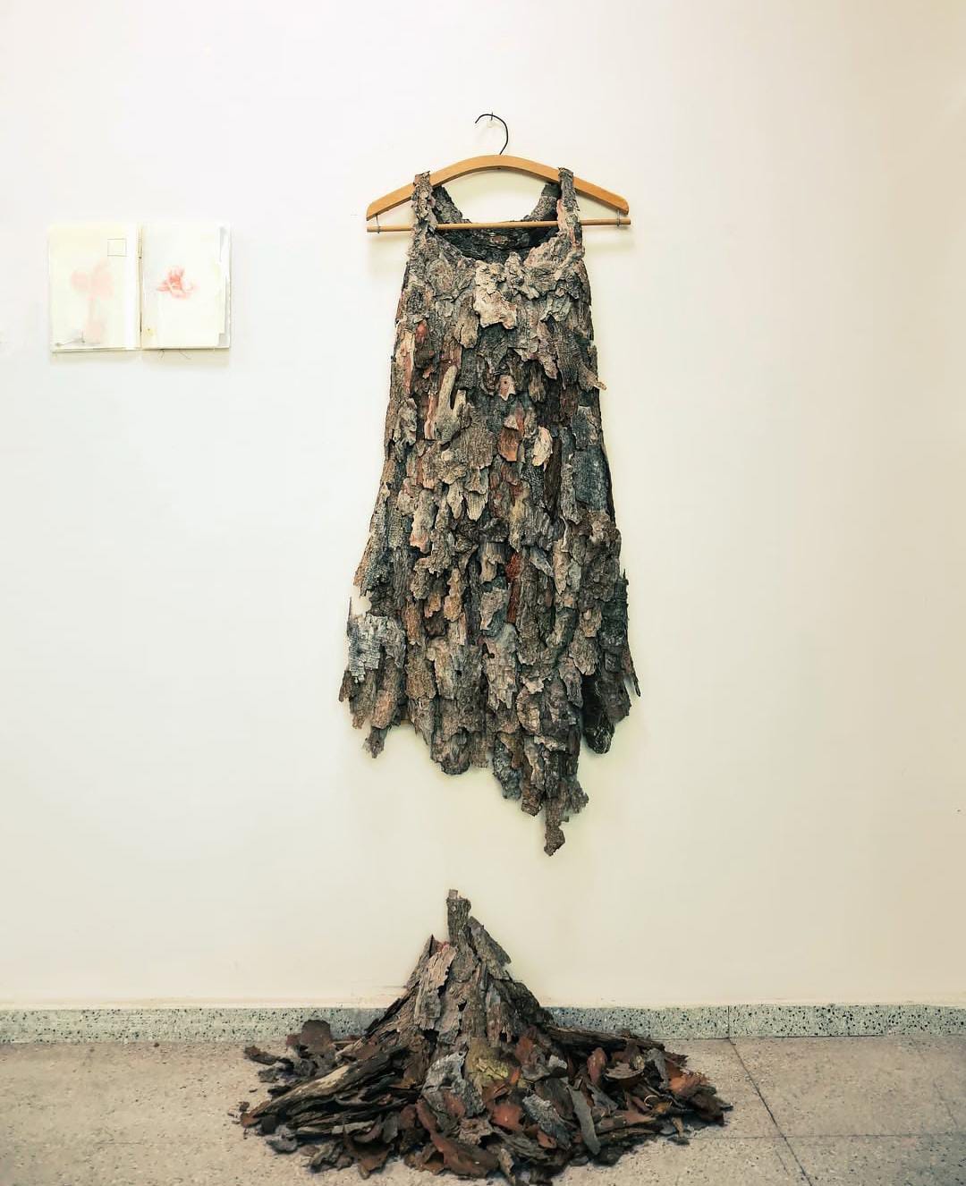 Yerleştime, ağaç kabukları, 155x46x40 cm