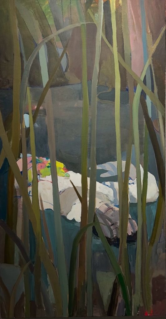 The long, vertical reeds in the composition recall John Everett Millais’s Ophelia, but there is no romantic view of death here. Instead, the scene suggests the cold and biological reality found in Gottfried Benn’s poem Schöne Jugend (Beautiful Youth).