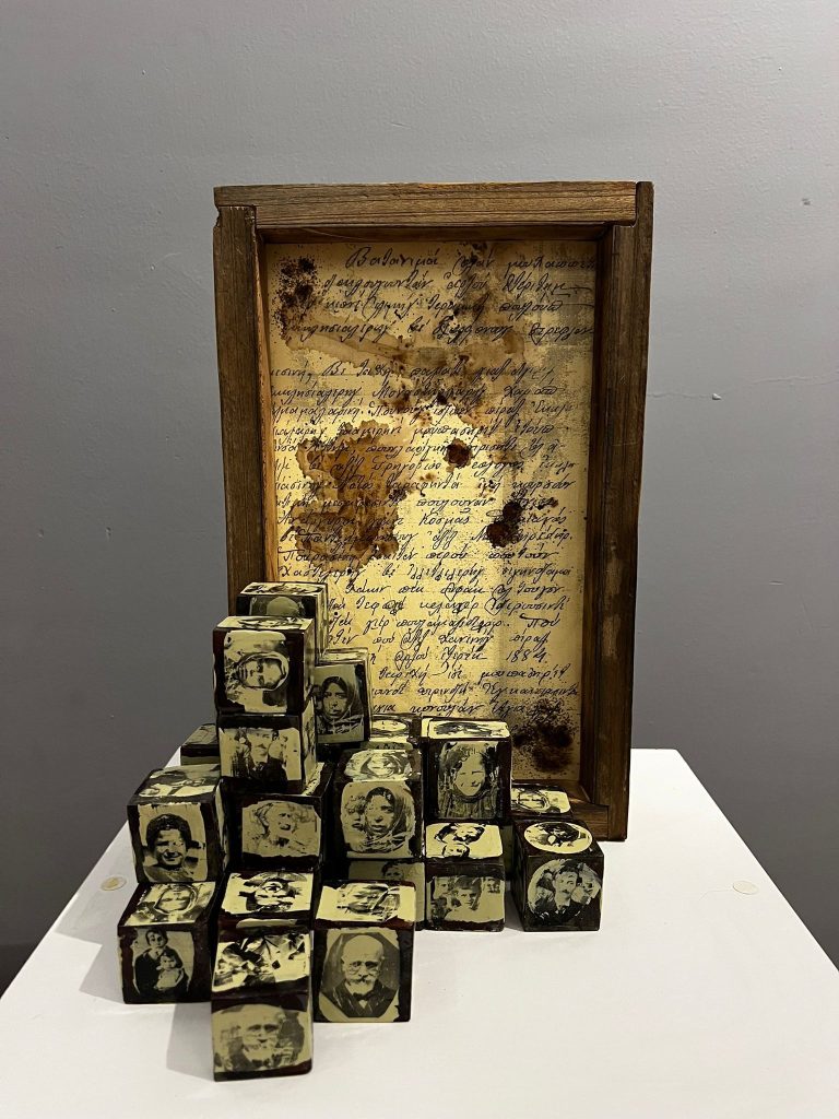 The work titled “The Othered” aims to bring together the photographs of the Karamanlı Orthodox Christians who departed from Gelveri and the Turks who arrived from Kavala. An old Rum (Greek) house door was used in the installation, symbolizing the idea of keeping the exiles under the same roof. Inside a wooden box, a letter from the Eforia—the Union for the Protection of Gelveri Schools in Istanbul—was placed, containing instructions that preparations had to be made for the exchange. The Georgiadou family house was chosen as the exhibition space.