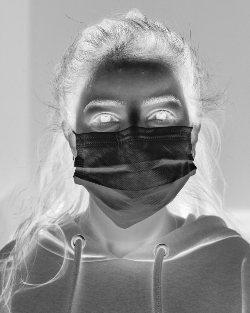 Covid pozitif hastalarını hanelerinin kapı eşiğinde çektiğim portrelerini fotoğrafın negatif alanına çevirerek sunmaya karar verdim. Böylece izleyeciler bu negatif ve maskeli fotoğraflarla iyice kimliksizleşmiş pozitif hastaların pandemi sürecine tanıklık ederken bir yandanda göz teması kurmuş gibi olacaklardır.