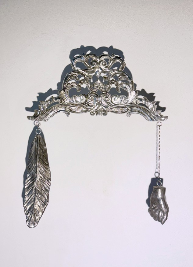 Aluminium, iron, wood, silver leaf, 73x55x38 cm