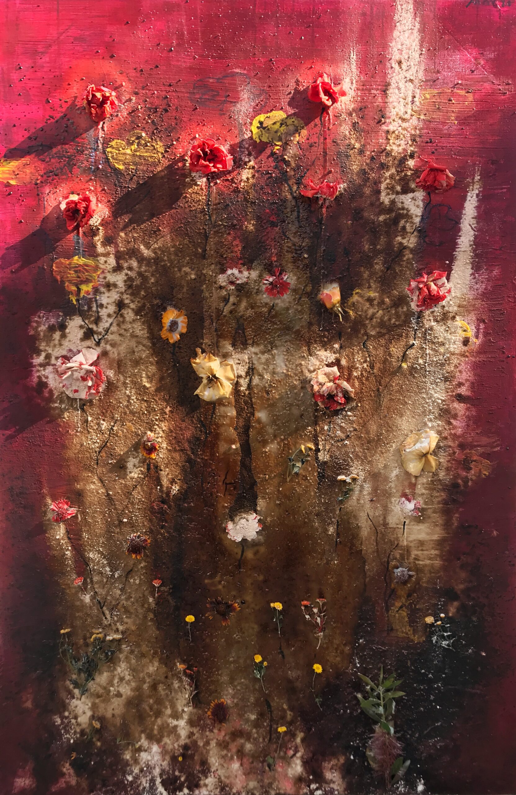 Tuval üzerine karışık teknik, çiçek, toprak ,160×100 cm
