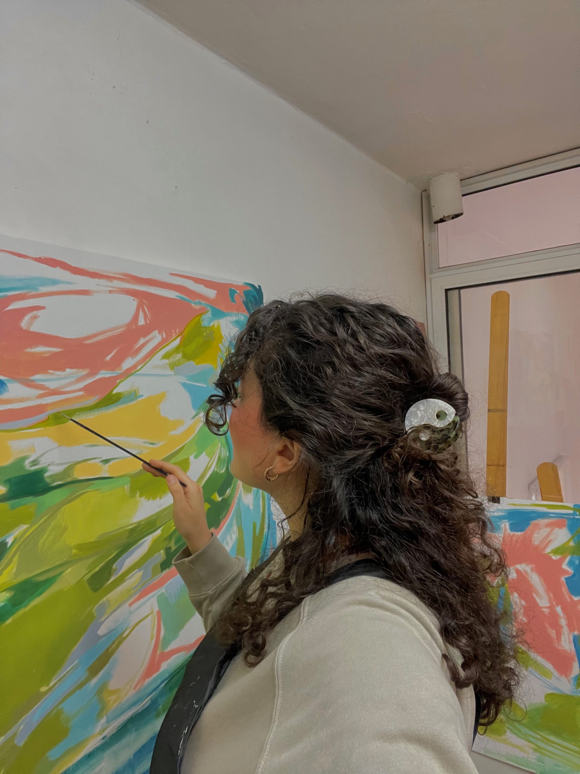In my works, where landscape serves as the central theme, I sometimes depict nature from a distant, panoramic perspective, while at other times I focus on a closer, more detailed observation. In my piece Water Path, a detailed view reflecting a closer examination of nature can be observed. The depiction of the water puddle here reached its final form through a series of sketches that progressively embraced greater abstraction. This work aims to achieve a mode of expression that is both experiential and subjective. Within this context, the painting can be understood not as a mere reproduction of reality, but as a subjective reconstruction accompanied by individual perception and interpretation.