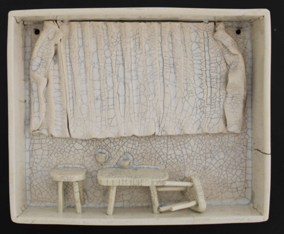 “Sürekli Yarın” isimli çalışma, erteleme eğiliminin ve yetersizlik duygusunun bireyde yarattığı kaygıyı ve kişinin kendi iç dünyasında verdiği sürekli, zorlu mücadeleyi ifade eder. Minyatür odalarda yerleştirilmiş küçük objelerin dağınıklığı, kişinin zihninde ve ruhunda yaşanan karmaşayı somutlaştırır; her obje, bireyin içsel çatışmasının ve bastırılmış duygularının sessiz bir göstergesidir. Üzerini kaplayan krakle sır, artık bu duyguların yalnızca içte kalmadığını, sınırlarını aşarak dış dünyaya taşındığını simgeler.