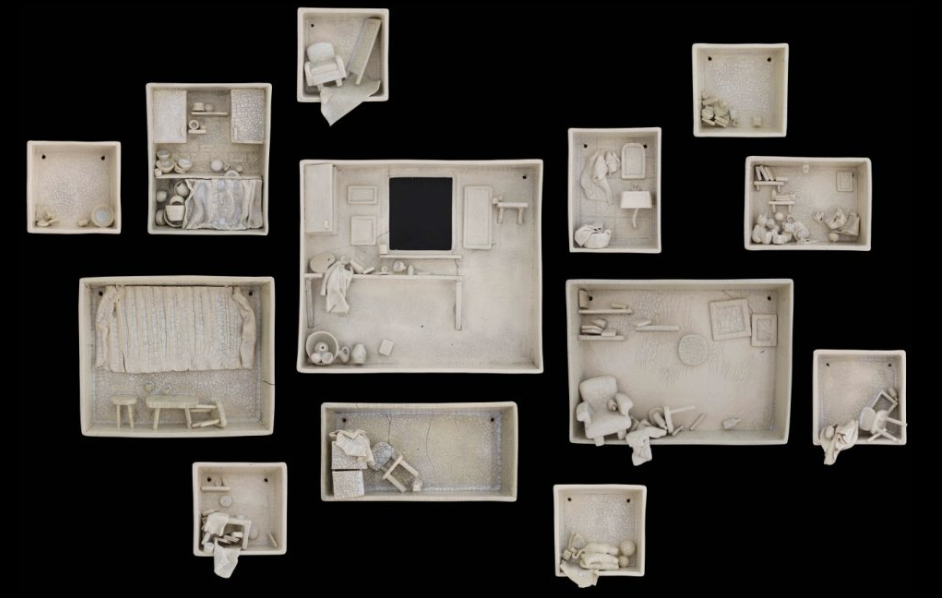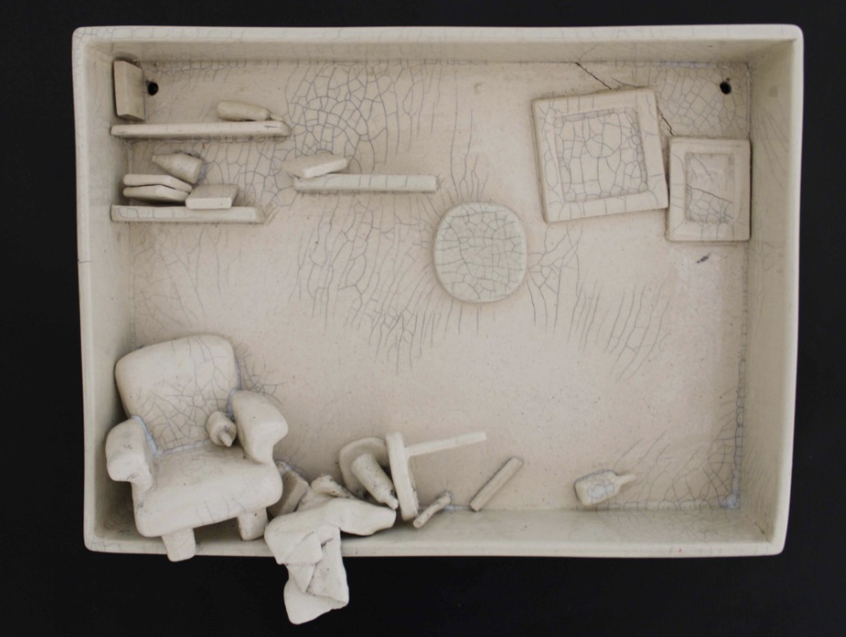 “Sürekli Yarın” isimli çalışma, erteleme eğiliminin ve yetersizlik duygusunun bireyde yarattığı kaygıyı ve kişinin kendi iç dünyasında verdiği sürekli, zorlu mücadeleyi ifade eder. Minyatür odalarda yerleştirilmiş küçük objelerin dağınıklığı, kişinin zihninde ve ruhunda yaşanan karmaşayı somutlaştırır; her obje, bireyin içsel çatışmasının ve bastırılmış duygularının sessiz bir göstergesidir. Üzerini kaplayan krakle sır, artık bu duyguların yalnızca içte kalmadığını, sınırlarını aşarak dış dünyaya taşındığını simgeler.