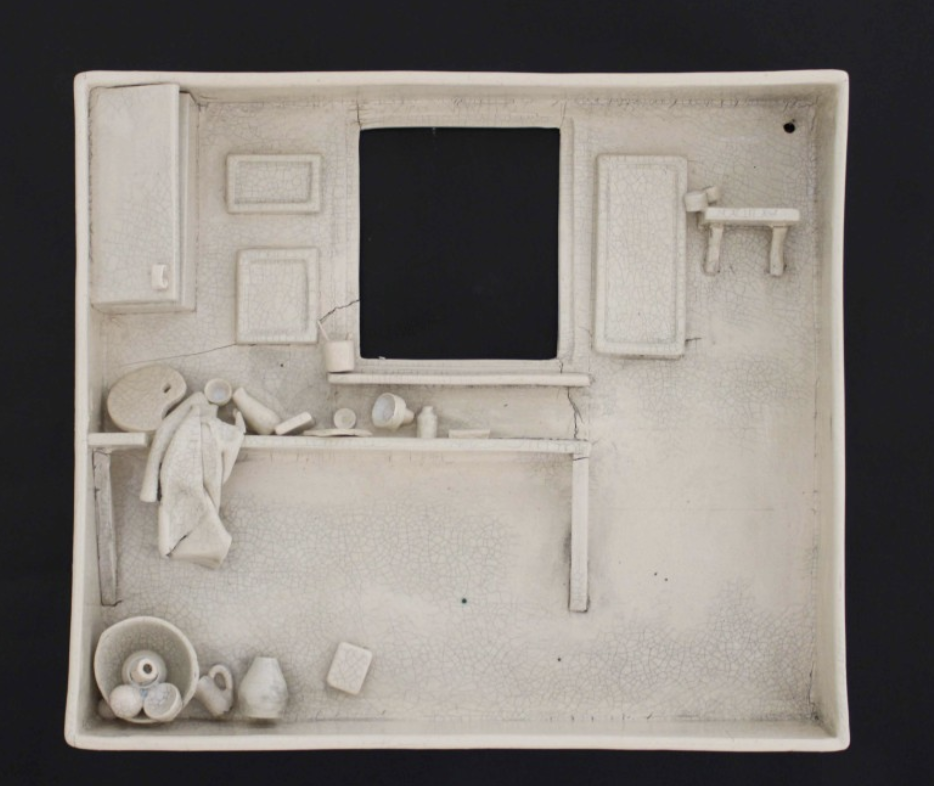 “Sürekli Yarın” isimli çalışma, erteleme eğiliminin ve yetersizlik duygusunun bireyde yarattığı kaygıyı ve kişinin kendi iç dünyasında verdiği sürekli, zorlu mücadeleyi ifade eder. Minyatür odalarda yerleştirilmiş küçük objelerin dağınıklığı, kişinin zihninde ve ruhunda yaşanan karmaşayı somutlaştırır; her obje, bireyin içsel çatışmasının ve bastırılmış duygularının sessiz bir göstergesidir. Üzerini kaplayan krakle sır, artık bu duyguların yalnızca içte kalmadığını, sınırlarını aşarak dış dünyaya taşındığını simgeler.