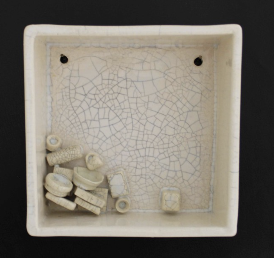“Sürekli Yarın” isimli çalışma, erteleme eğiliminin ve yetersizlik duygusunun bireyde yarattığı kaygıyı ve kişinin kendi iç dünyasında verdiği sürekli, zorlu mücadeleyi ifade eder. Minyatür odalarda yerleştirilmiş küçük objelerin dağınıklığı, kişinin zihninde ve ruhunda yaşanan karmaşayı somutlaştırır; her obje, bireyin içsel çatışmasının ve bastırılmış duygularının sessiz bir göstergesidir. Üzerini kaplayan krakle sır, artık bu duyguların yalnızca içte kalmadığını, sınırlarını aşarak dış dünyaya taşındığını simgeler.