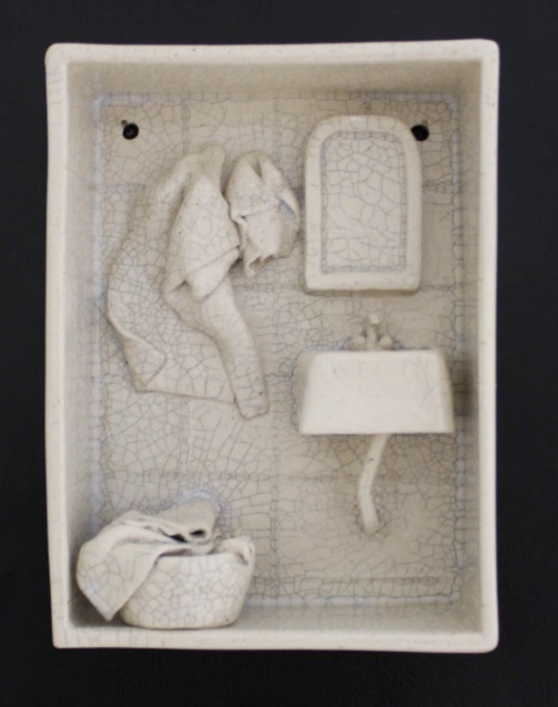 “Sürekli Yarın” isimli çalışma, erteleme eğiliminin ve yetersizlik duygusunun bireyde yarattığı kaygıyı ve kişinin kendi iç dünyasında verdiği sürekli, zorlu mücadeleyi ifade eder. Minyatür odalarda yerleştirilmiş küçük objelerin dağınıklığı, kişinin zihninde ve ruhunda yaşanan karmaşayı somutlaştırır; her obje, bireyin içsel çatışmasının ve bastırılmış duygularının sessiz bir göstergesidir. Üzerini kaplayan krakle sır, artık bu duyguların yalnızca içte kalmadığını, sınırlarını aşarak dış dünyaya taşındığını simgeler.