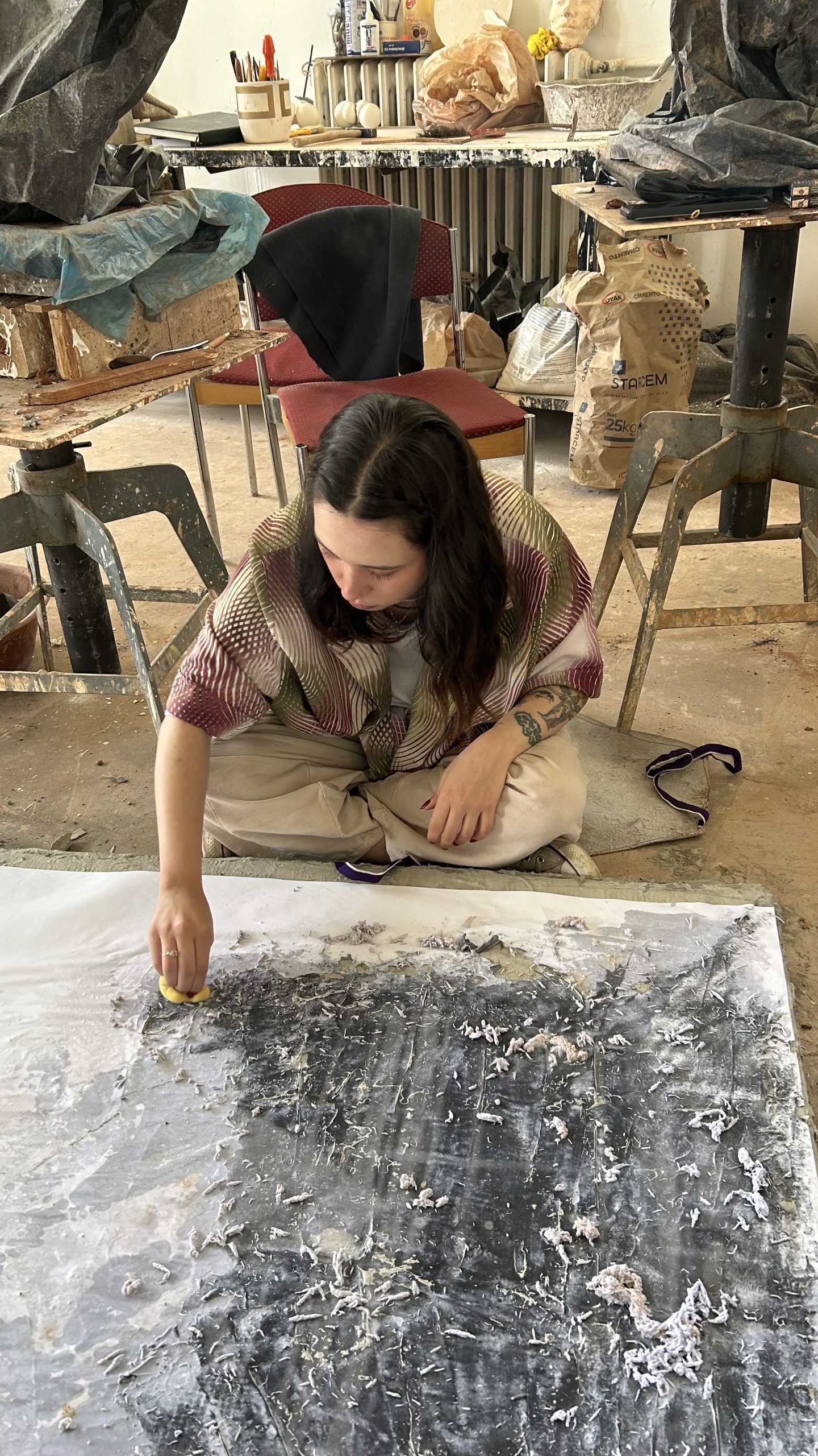 Askılık üzerine yerleştirilmiş ve betonla kaplanan nesneler, gündelik olanın hızla tüketilip gözden düşmesine karşı, katı ve ağır bir karşılık üretir. Burada beton, nesnenin işlevini askıya alır; onu kullanılabilir olmaktan çıkararak yalnızca bir kalıntı olarak görünür kılar. Çalışma, geçiciliğin kalıcılıkla çarpıştığı noktada, toplumsal hafızanın nasıl donduğu ve sıradan olanın nasıl bir iz bıraktığı sorusunu gündeme taşır. Bu donukluk, hem bireysel hem de kolektif düzeyde unutma ile hatırlama arasında gidip gelen tekrarları görünür kılar; çıkışı olmayan bir devinim, yükün daima yeniden taşınması gibi.