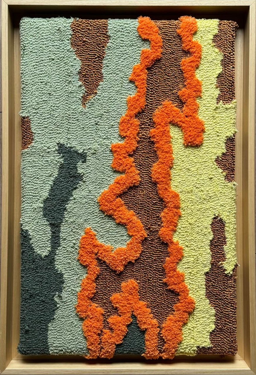 The cracks on the surface of the earth transform into a metaphor of skin in this work. The layered weaving constructs a memory surface carrying traces of drought, marks, and pain; like a worn yet living body. The rising orange forms point to scabbed wounds and the possibility of healing, while the silent surface reveals suppressed narratives. The work represents an organic existence oscillating between fragility and resistance.