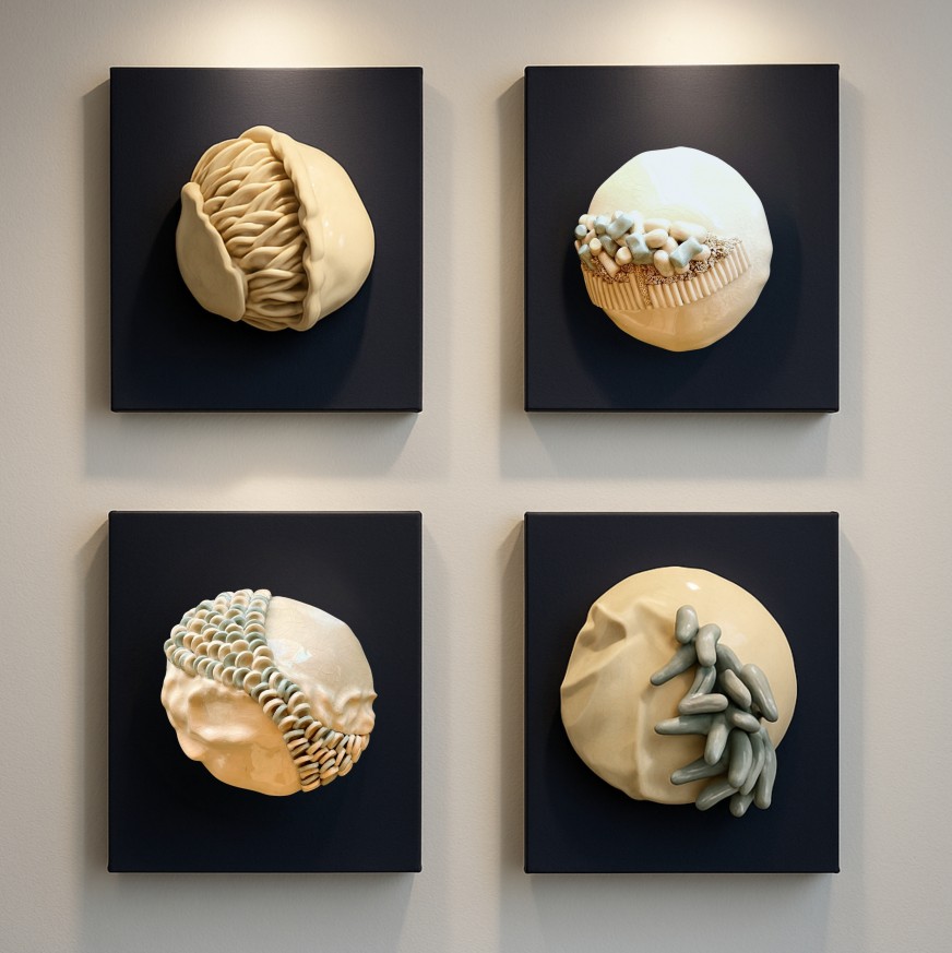 This work is a reinterpretation of the microscopic world translated into a macro scale. It is inspired by the electron microscope image of the microorganism Penicillium. This organism represents both a source of healing — as the producer of the first antibiotic — and a harmful mold that causes food spoilage. The coexistence of its beneficial and detrimental effects creates an ironic contrast. Though invisible to the naked eye, this living being rapidly spreads under suitable conditions, transforming into mold and revealing another layer of reality. The balance and unity observed at this microscopic level point to the existence of another, awe-inspiring world. In this work, through time and observation, the contrast carried from the micro to the macro has been transformed into a topographic image, evoking the resonance of “the harmony of opposites.”