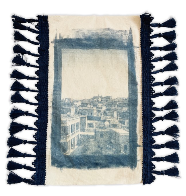 Fotoğraf, Kumaş ve sulu boya kâğıdı üzerine Cyanotype baskı, 30×44 cm