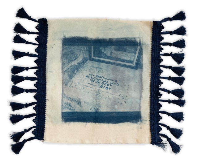 Fotoğraf, Kumaş ve sulu boya kâğıdı üzerine Cyanotype baskı, 36×36 cm