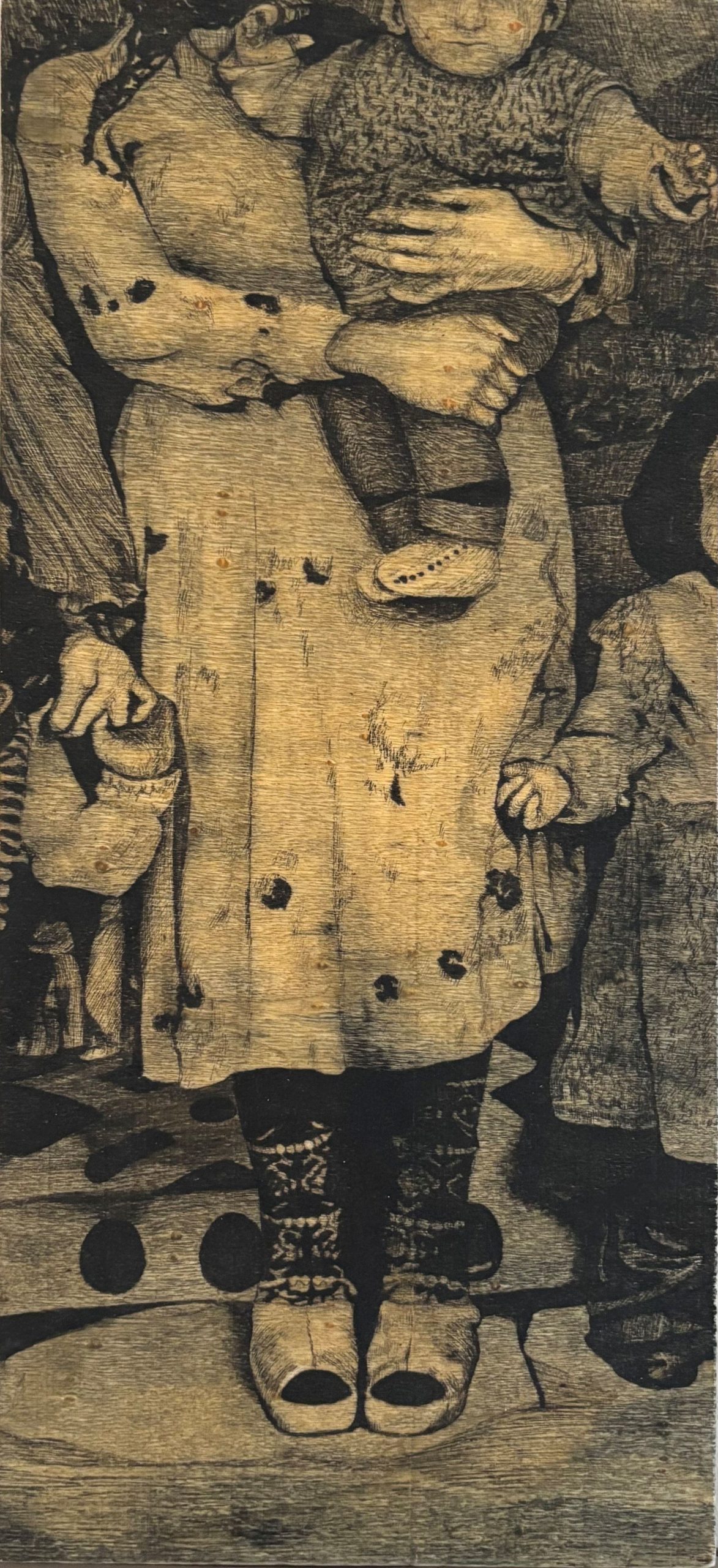 Her birey kendi varlığını farklı yollarla kurar ve görünür kılar. Bu eser özelinde, bir kadın bebeğini kollarında tutarken anneliği üzerinden var olur; kendisini başka bir yaşamla ilişki içinde tanımlar. Yanındaki çalışmada ise tek başına duran bir kadın görürüz; burada varoluş, yalnızca kendi benliği üzerinden inşa edilir.
