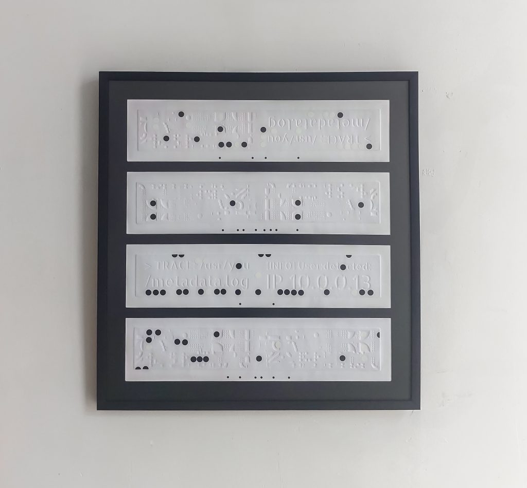 Data_fade: Data that appears to have been deleted continues to leave traces in memory. The voids on the embossed surface represent the persistence of forgotten information. What is unseen becomes tangible.