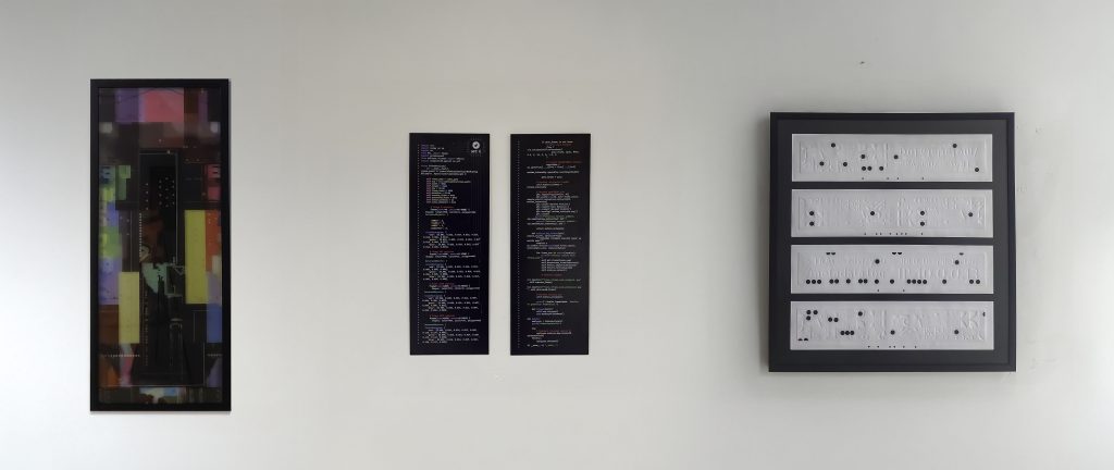 Residual_Grid, UV print on MDF panel, Python coding, NFC tag, 69×25 cm (2), ed. 1/1