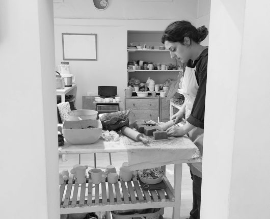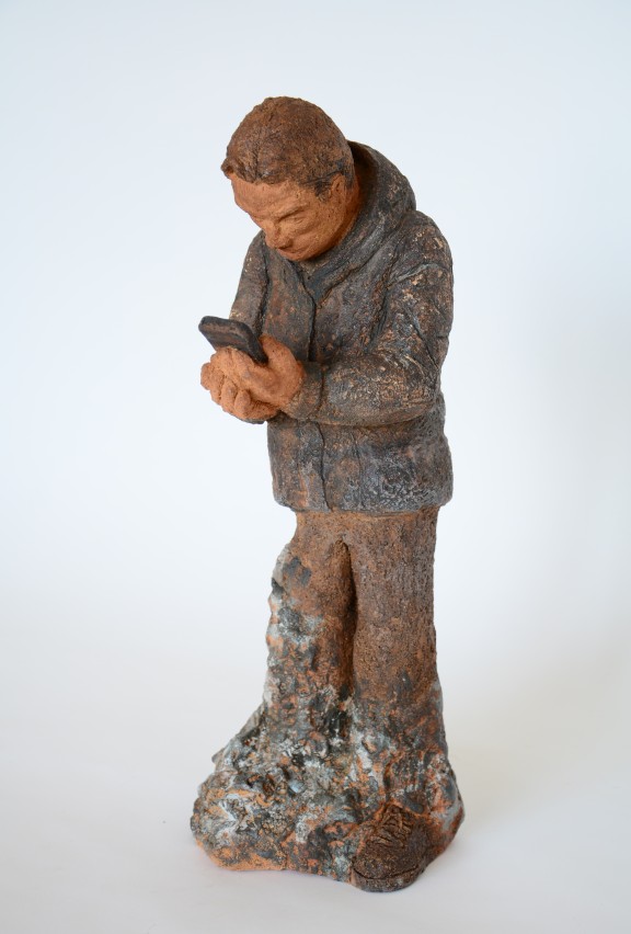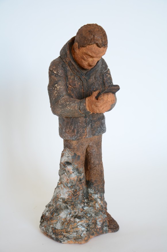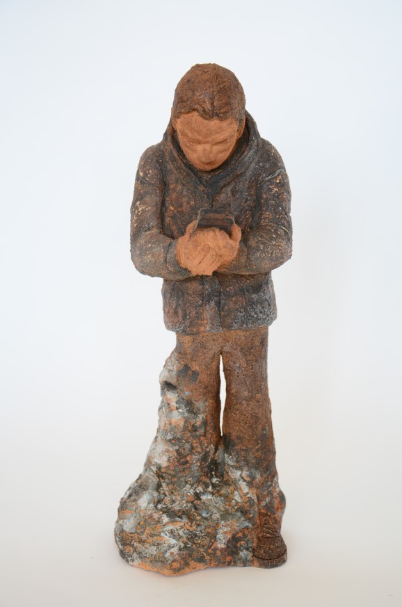 Chamotte clay, manganese oxide, colored underglaze, hand-built, 1160 °C, 45x17x15 cm