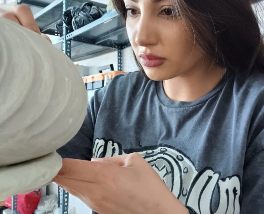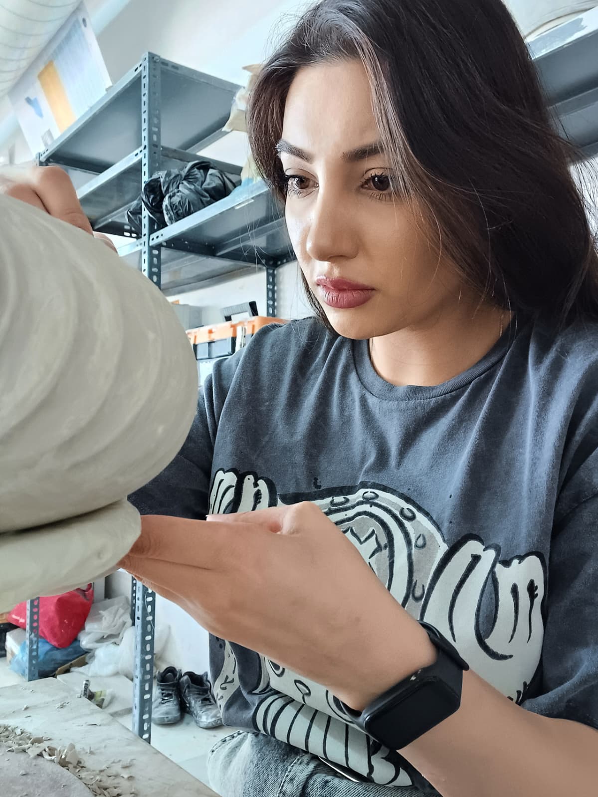 This work, titled “Time,” consists of ceramic plate and sphere forms based on the fundamental principles of Gestalt theory. Scenes reconstructed using fundamental artistic elements such as dot, line, light, and shadow are transferred to the surface using sgraffito and inlay techniques. Visual perception is guided by the principles of figure-ground relationship, similarity, and unity, presenting formal balance and conceptual expression together. The reconstructed perception of space is achieved by utilizing Gestalt theory in the composition of ceramic forms, incorporating not only geometric relationships but also the concept of unity between ground and form into the fundamental design elements. Gestalt theory was examined throughout the design process, its place in artistic practice was observed, and applications were made to ceramic surfaces using sgraffito and inlay decoration techniques.