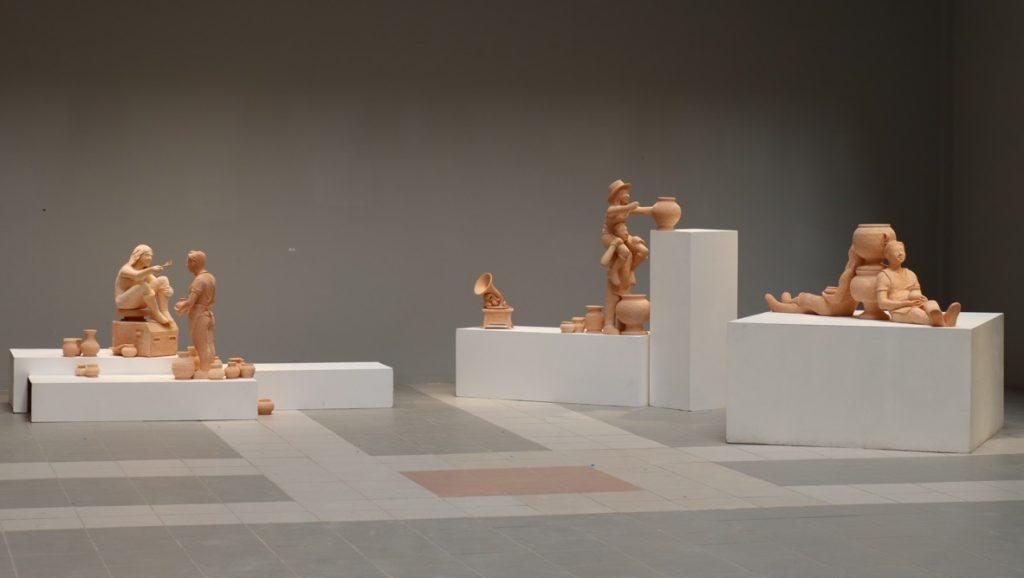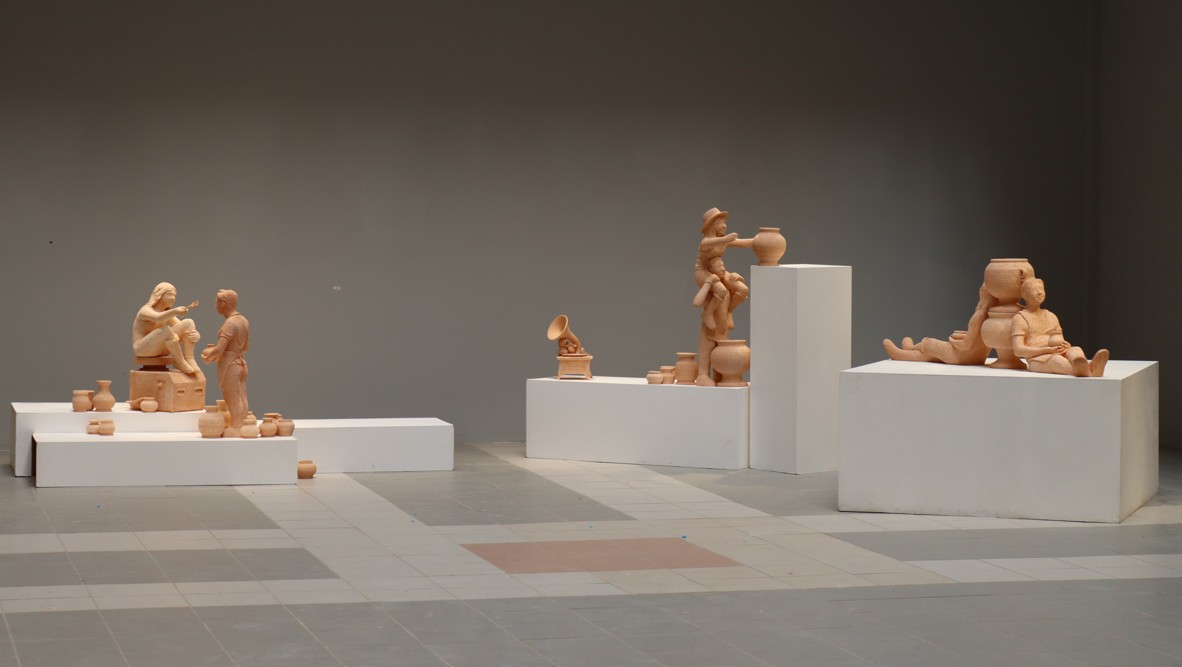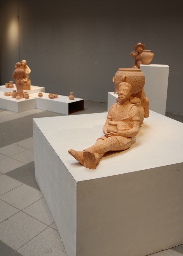 Seramik heykel, elle şekillendirme, şamotlu çamur, 960°C sırsız pişirim, 185x105x135 cm, 101x90x138 cm, 88x91x149 cm (31 parça)
